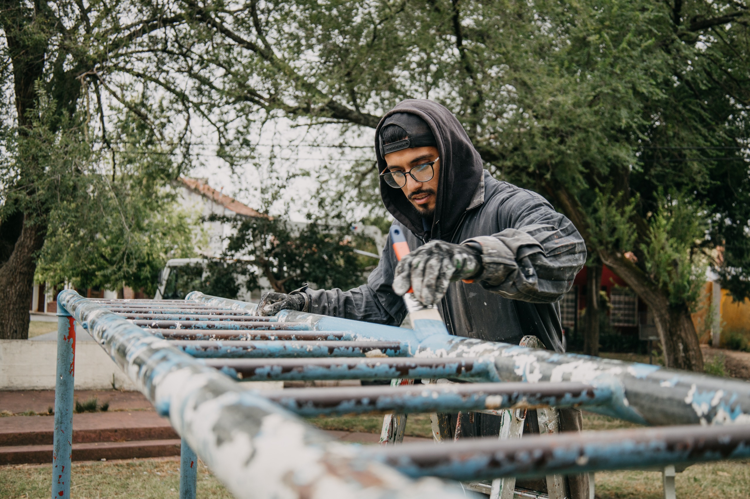 En el marco de estas acciones, se realizó el corte de pasto en la totalidad del predio, abarcando tanto los canteros centrales como los contornos de la plaza. Asimismo, se repararon y pintaron los juegos infantiles que presentaban deterioros, asegurando su correcto funcionamiento y seguridad.