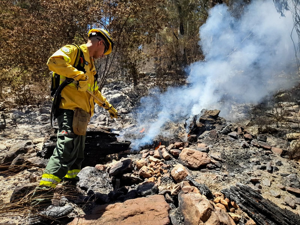Fuentes de bomberos subrayaron «la dificultad del terreno y las condiciones climáticas, altas temperaturas, baja humedad y vientos fuertes».