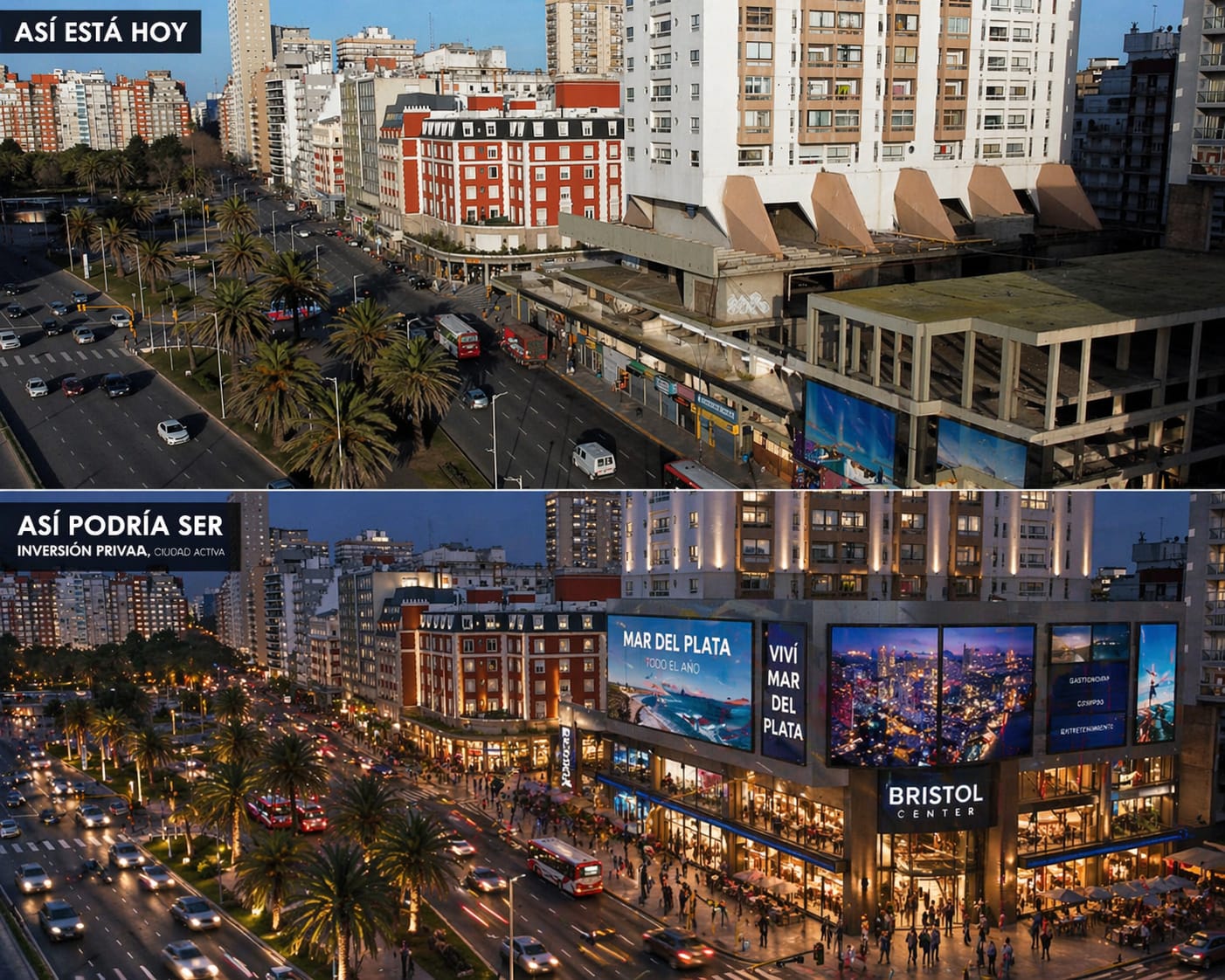 “El complejo Bristol Center es un ejemplo de oportunidades que la ciudad está perdiendo. Tenemos que transformar esos espacios paralizados en lugares que generen actividad, trabajo y movimiento. Es un lugar icónico que hoy está deteriorado y necesitamos saber en qué estado está para poder avanzar y recuperarlo”, señaló Guido García.