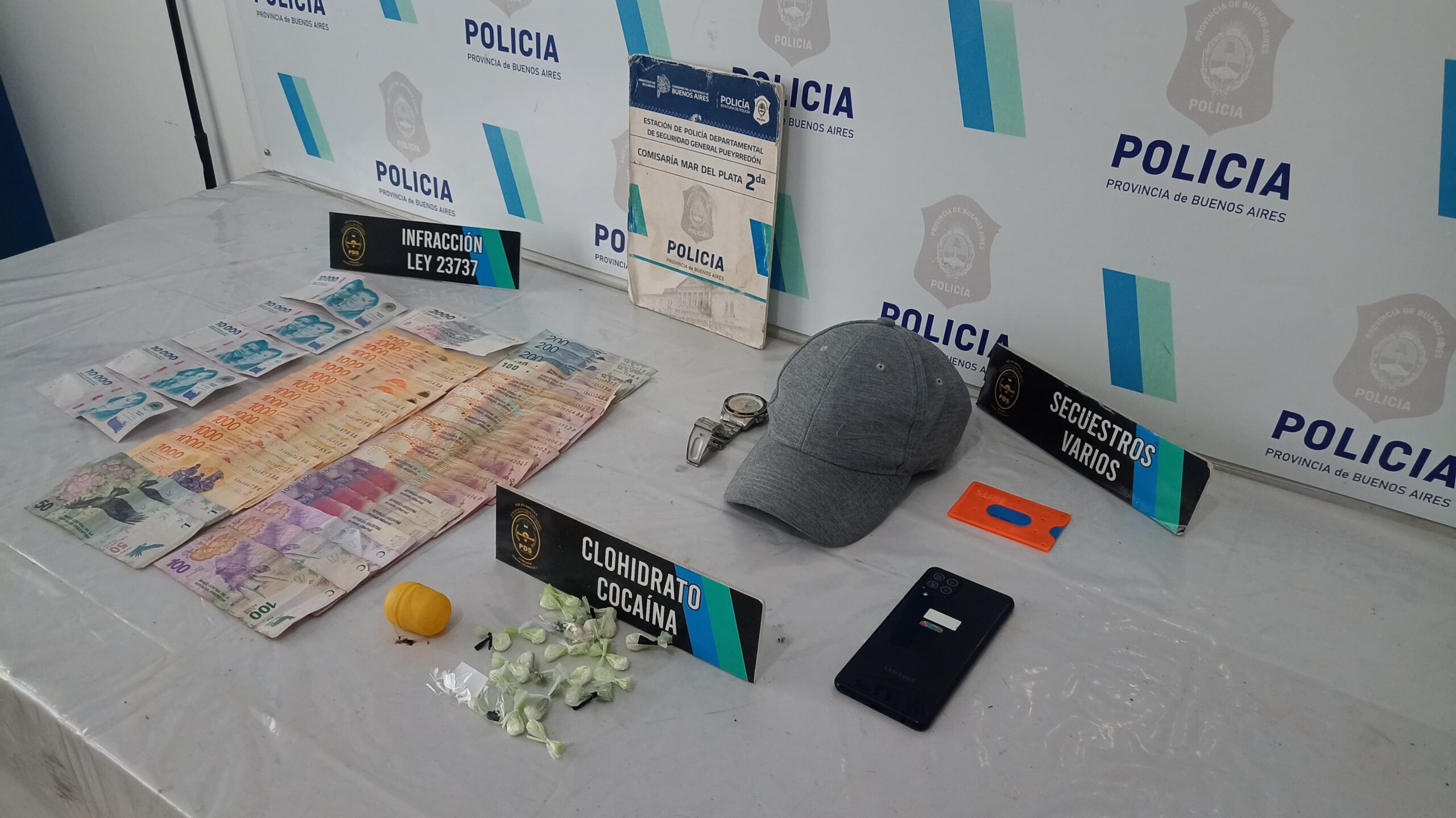 Según se desprende del parte policial, el sujeto tenía en distintos bolsillos de sus prendas 21 envoltorios de bolsas pequeñas de nylon que contenían cocaína. En el marco del accionar de los efectivos policiales, también se secuestraron un teléfono celular Samsung y dinero en efectivo (cambio de baja denominación).