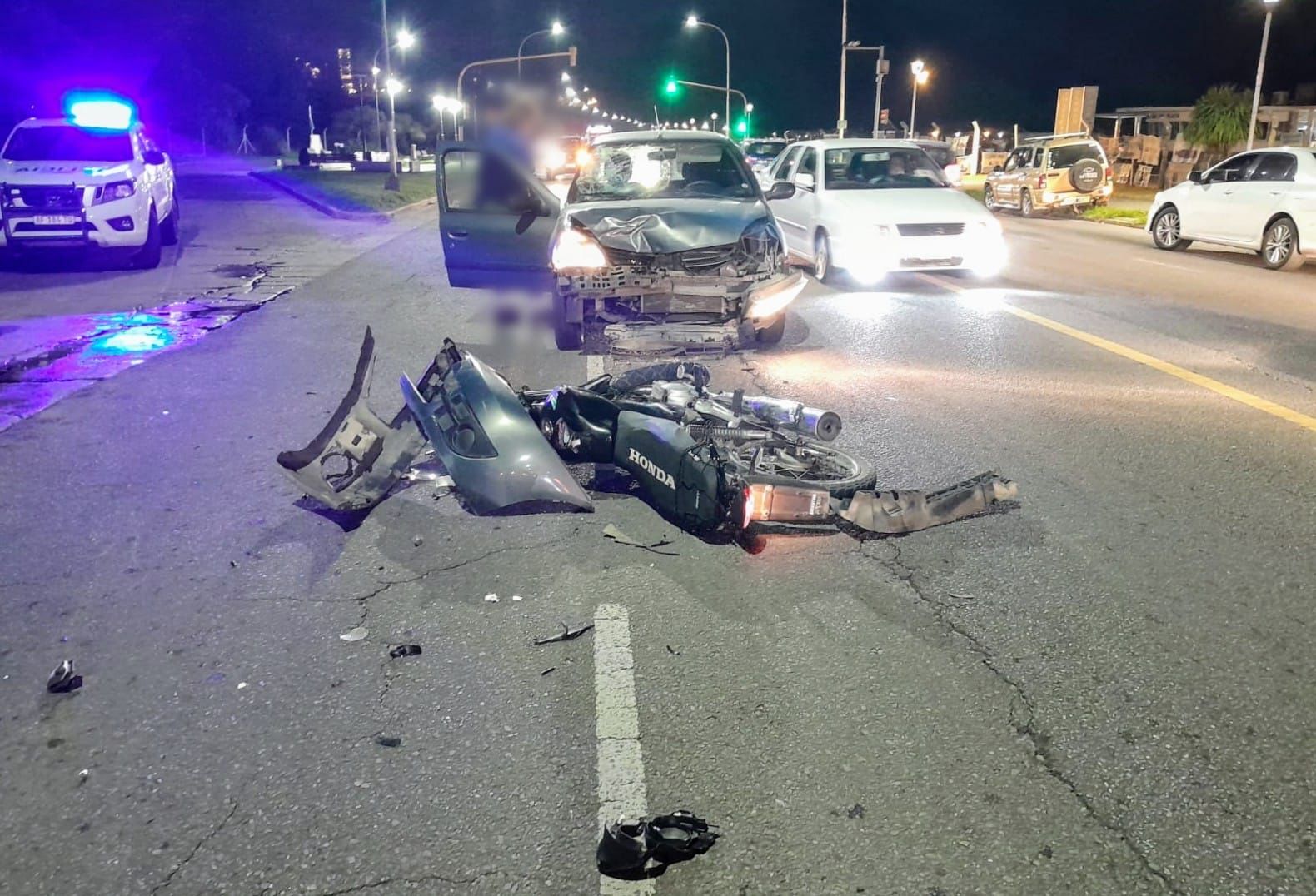 Al arribar, en la avenida Patricio Peralta Ramos, a la altura del acceso a la Base, el personal constató que se había dado un violento choque de frente entre un Renault Clio conducido por una mujer de 60 años que circulaba por la avenida Patricio Peralta Ramos desde Formosa en dirección a la avenida Juan B. Justo, y una motocicleta Honda CG 150cc conducido por un joven de 19 años, acompañado por otro de 17.