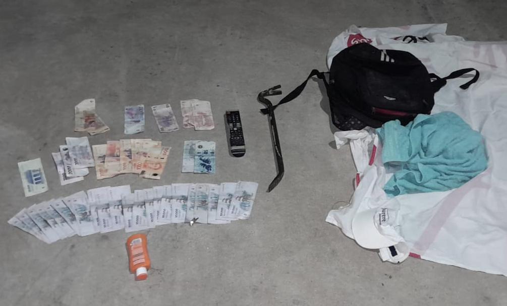 A partir de un rápido despliegue operativo en la zona, se logró la interceptación de tres de los involucrados en lotes linderos, procediéndose además al secuestro de dinero en efectivo, un control remoto, una barreta, guantes, un teléfono celular y una mochila con elementos varios, vinculados al hecho.