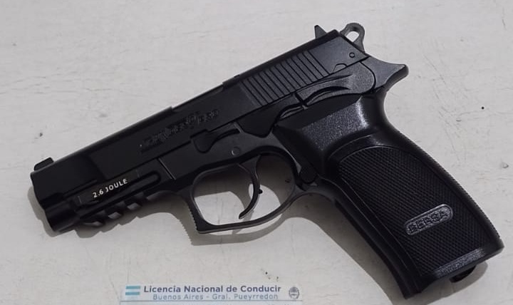 Al ser interceptado por el personal policial, se negó a aportar sus datos y se constató en el interior del rodado vehículo un objeto similar a un arma de fuego, determinándose posteriormente que se trataba efectivamente de un arma, pero de utilería, tipo gas comprimido.