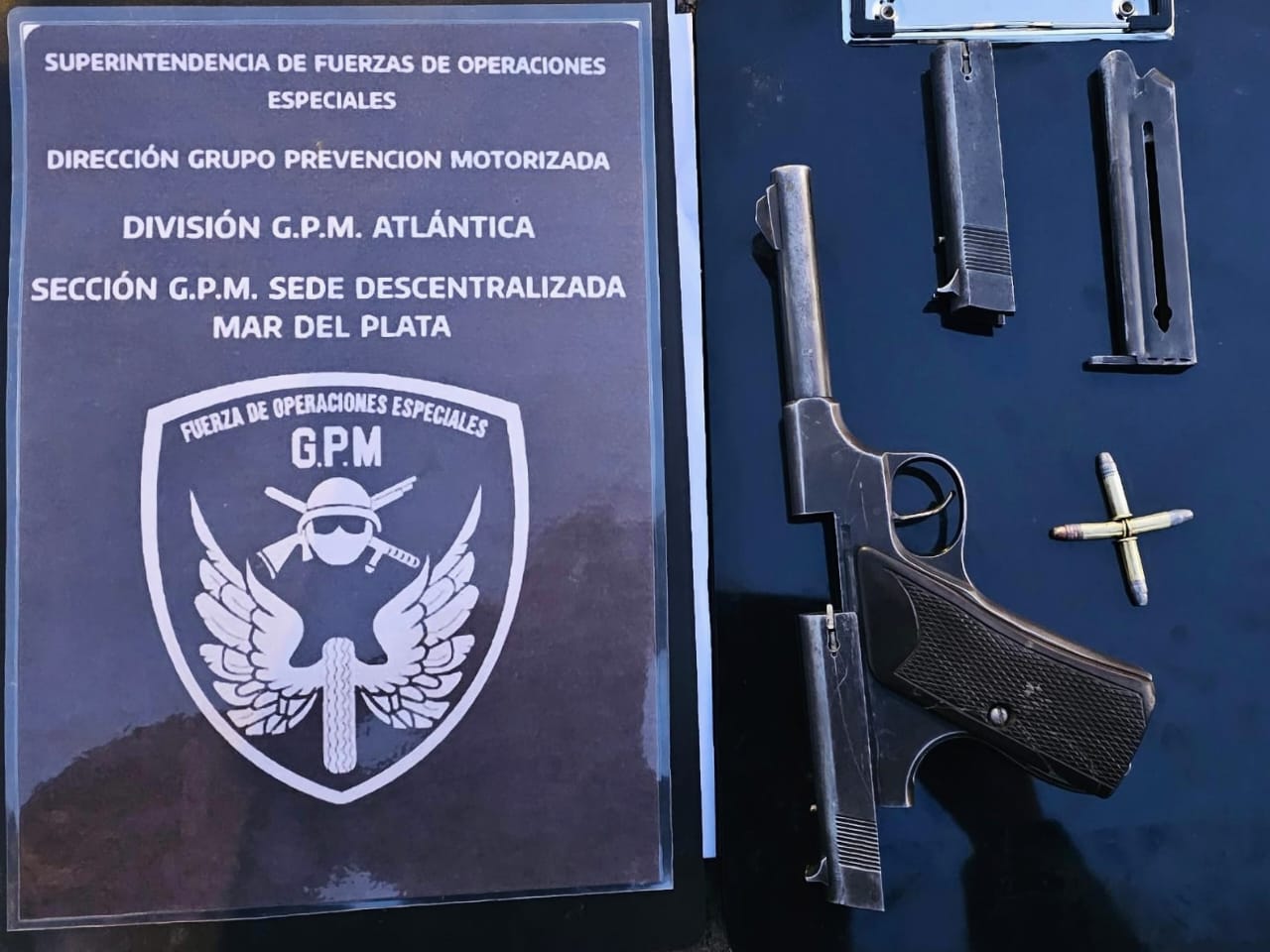 En la avenida Mario Bravo y Dellepiane, el personal identificó al sujeto que circulaba en una moto Mondial 110cc, el cual portaba un arma de fuego tipo pistola calibre .22 marca «Tala».