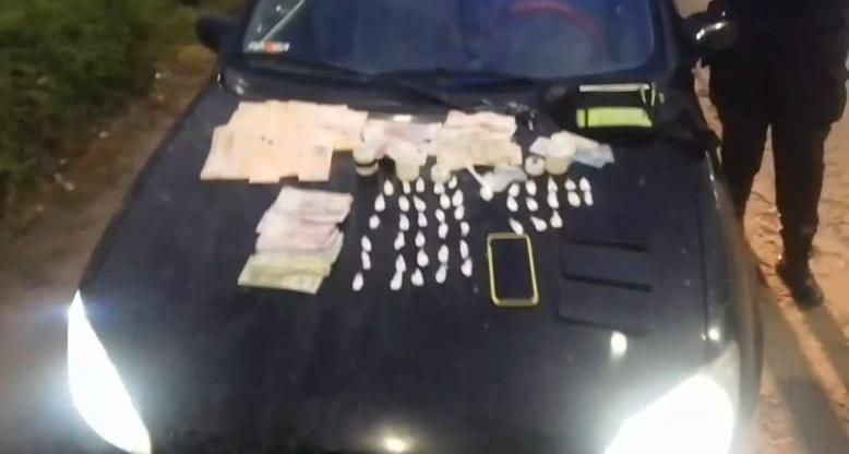 Los efectivos le solicitaron que desciendan del rodado, y fue en ese momento que constataron que el conductor poseía entre sus prendas de vestir una piedra de cocaína de un peso de 5.50 gramos. Posteriormente, en el interior del rodado se hallaron dos frascos con 43 envoltorios con cocaína, con un peso de 31.91 gramos. Además, se incautó la suma de 191.500 pesos en efectivo.