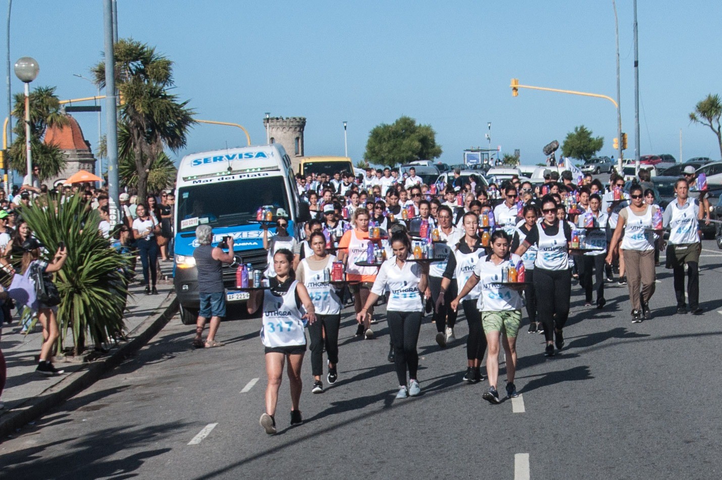 El evento, que desde hace casi 30 años es un clásico de cada verano y cuenta con el apoyo del Ente Municipal de Turismo y Cultura (Emturyc), tuvo su previa en horas de la tarde y, pasadas las 17, comenzó a desarrollarse la carrera en la que los mozos y las camareras lucieron su destreza trasladando en sus bandejas productos típicos de la gastronomía marplatense desde el Torreón del Monje hasta el Hermitage Hotel, con la presencia de su titular, el empresario Florencio Aldrey Iglesias y la Guardia Nacional del Mar.