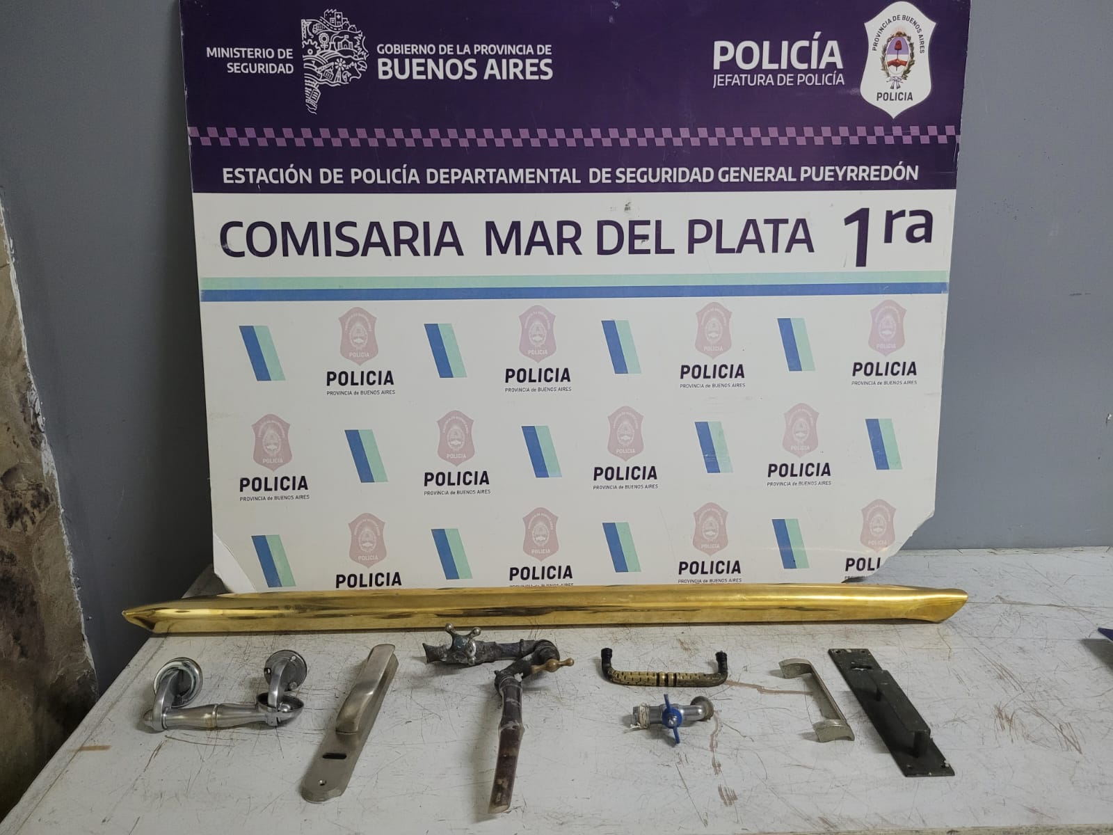 Ya en la zona de San Juan y Bolívar, los uniformados procedieron a la aprehensión de los delincuentes (20 y 21), a quienes se les secuestran cinco picaportes y una grifería.
