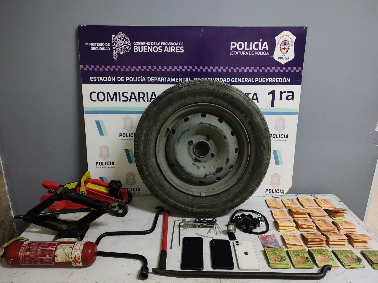 Puesto en conocimiento, el Dr. Gastón De Marco, de la UFI Flagrancia, dispuso que se realice una requisa de urgencia y el secuestro de todos los elementos: tres teléfonos celulares, herramientas, una rueda de auxilio, dinero en efectivo, unos 200.000 pesos aproximadamente.
