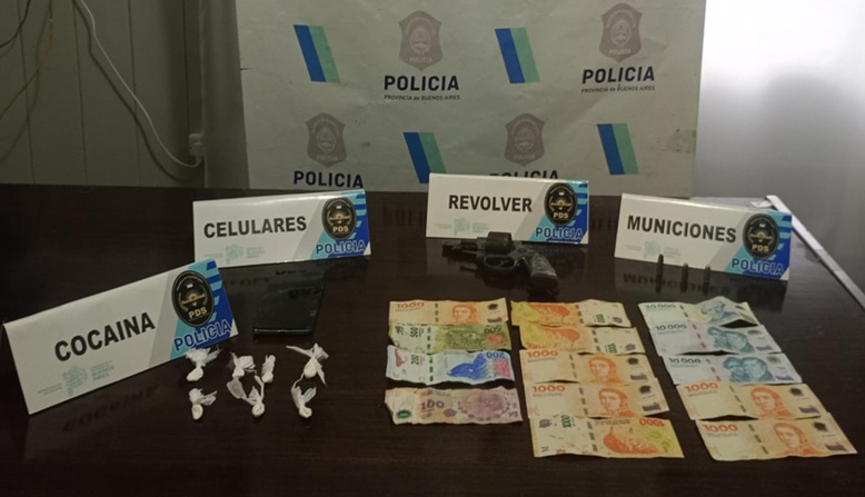 En su poder, el menor de edad, tenía un revólver calibre 32 con municiones, mientras que el mayor, le incautaron de entre sus prendas varios envoltorios con clorhidrato de cocaína por un peso de 4.5 gramos, dinero en efectivo ($48.800) y un teléfono celular.