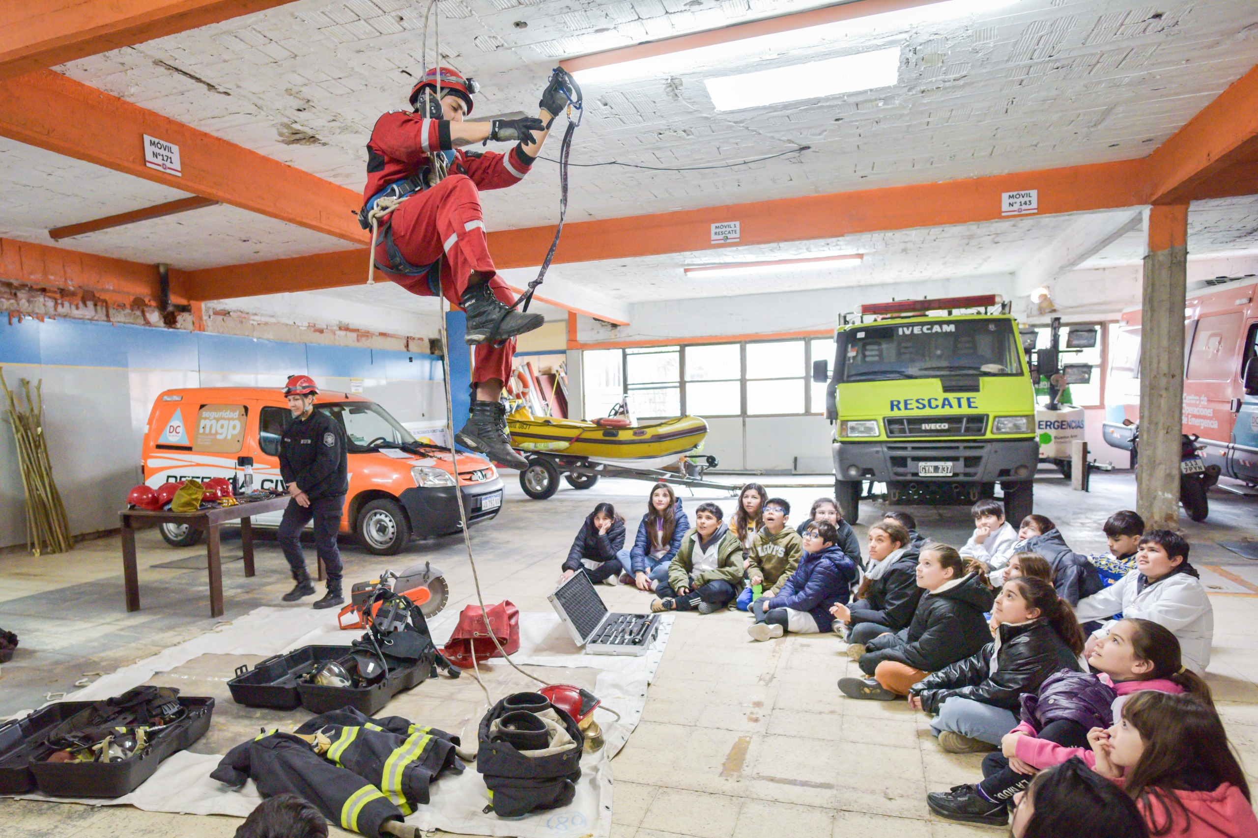 Desde Defensa Civil comenzaron las visitas al cuartel, previamente programadas, para que alumnos de los diferentes establecimientos educativos de General Pueyrredon conozcan la labor y aprendan las diferentes técnicas de rescate.