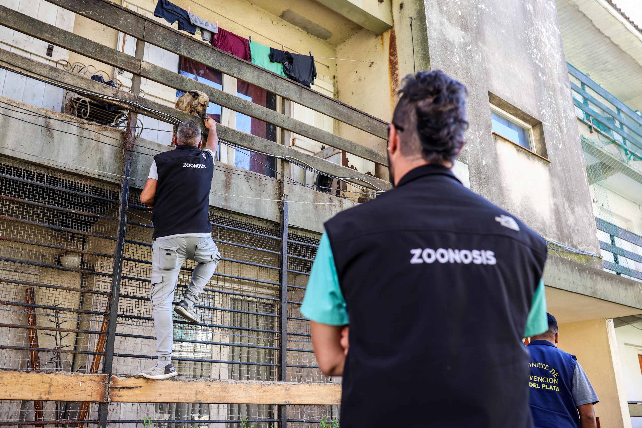 La Municipalidad de General Pueyrredon –a través del personal de las divisiones de Inspectoría y Maltrato y Bienestar Animal de Zoonosis- junto a la Unidad Fiscal Nº6 y la Comisaría 5°, trabajaron para rescatar a un perro y un gato en estado de desnutrición que estaban abandonados en el balcón de un departamento del complejo de viviendas conocido como Barrio SOIP, en Antártida Argentina y Mario Bravo.
