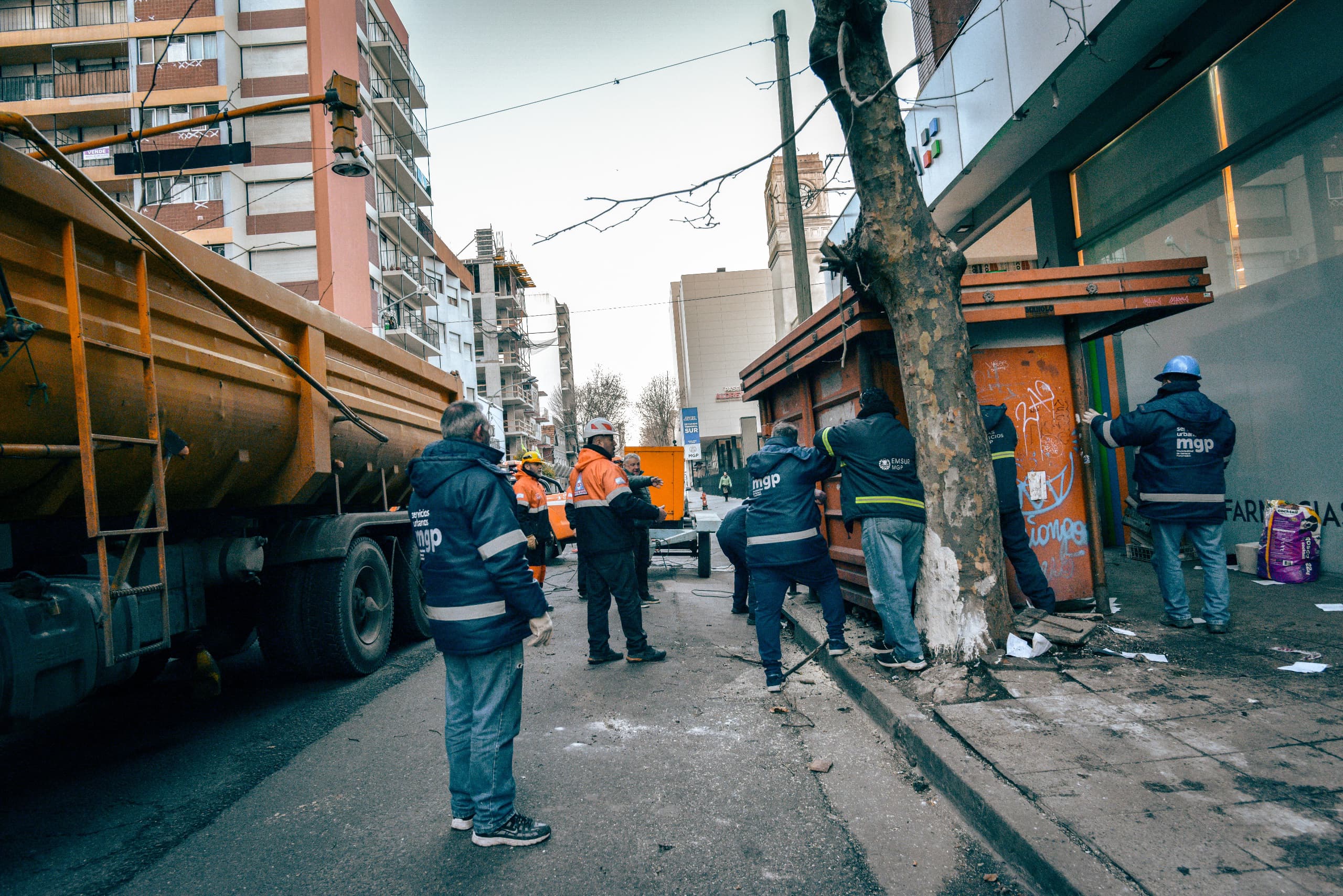 En el marco de las acciones de prevención en materia de seguridad pública y el ordenamientos y control de los espacios, la Municipalidad de General Pueyrredon -a través de Defensa Civil, EMSUR, EMVIAL e Inspección General- está llevando adelante distintos operativos para retirar estructuras abandonadas de kioscos de diarios y revistas.