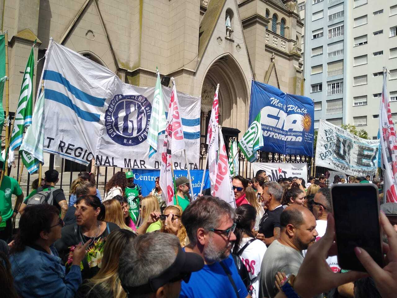 Sobre las 14:30 fueron algunos representantes de las principales centrales obreras las que leyeron un documento desde el monumento al General San Martín donde se reivindicaron los derechos de los trabajadores, se repudió el ajuste y la inflación, como así también se dejó claro que «la patria no se vende».