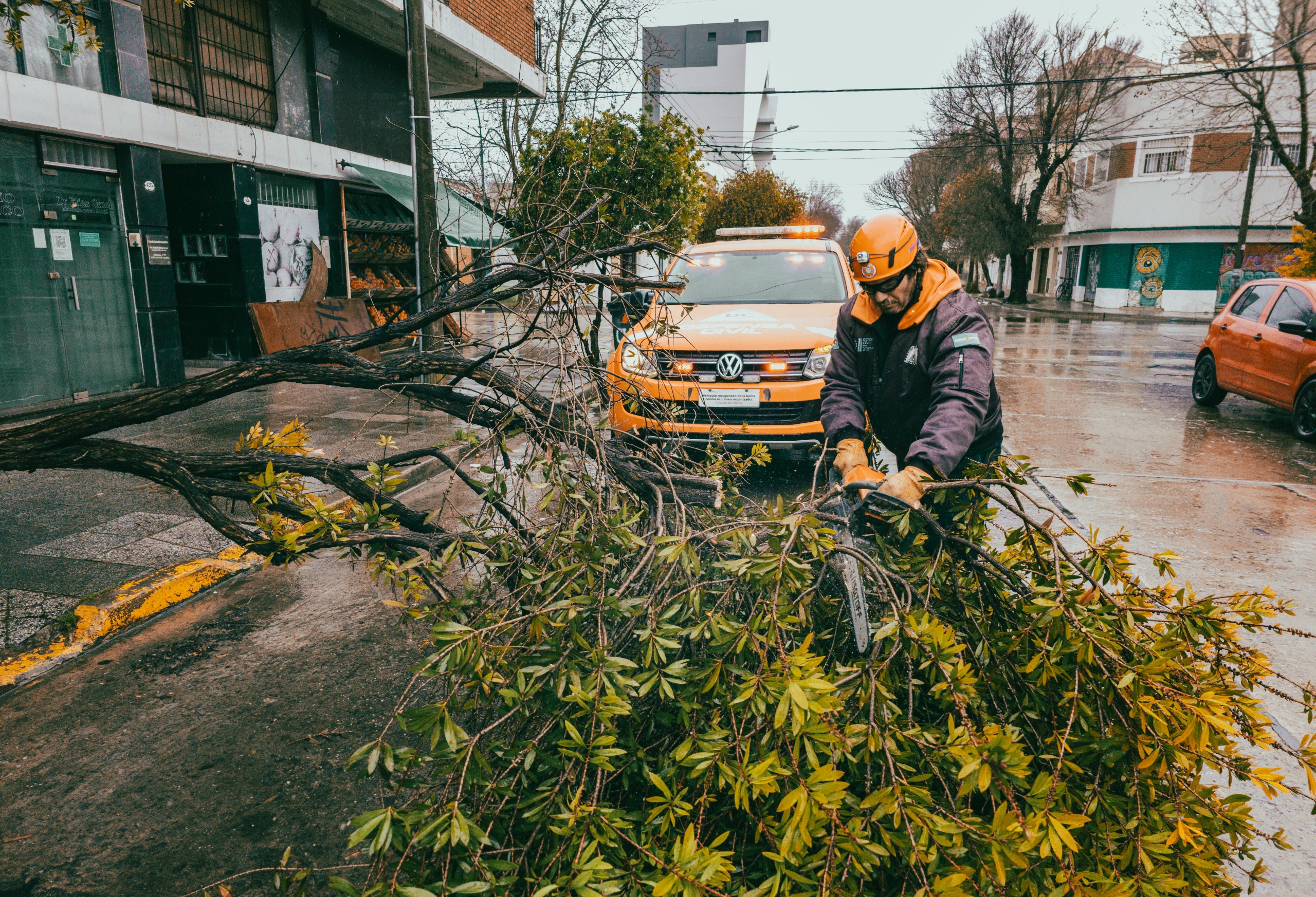 Por su parte, Defensa Civil realiza un trabajo cotidiano, además de las eventualidades climáticas por los alertas meteorológicos, como incidentes en la vida urbana que requieren una tarea de acercamiento, perímetro, reparación o remoción, en acción directa o coordinada con otras áreas, empresas de servicios públicos, o fuerzas de seguridad siniestral.
