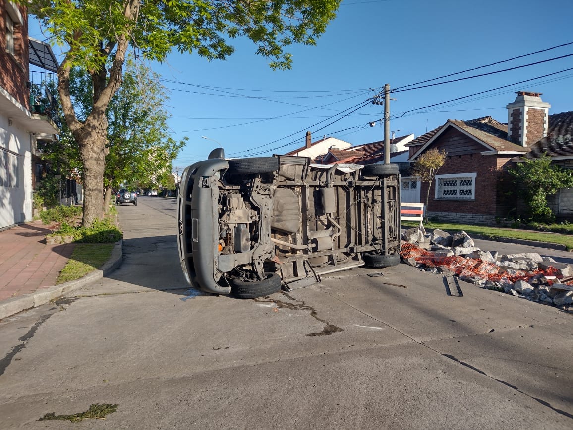 El choque se produjo entre un Volkswagen Gol y una Peugeot Boxer. Producto del fortísimo impacto, la camioneta quedó volcada sobre el asfalto.