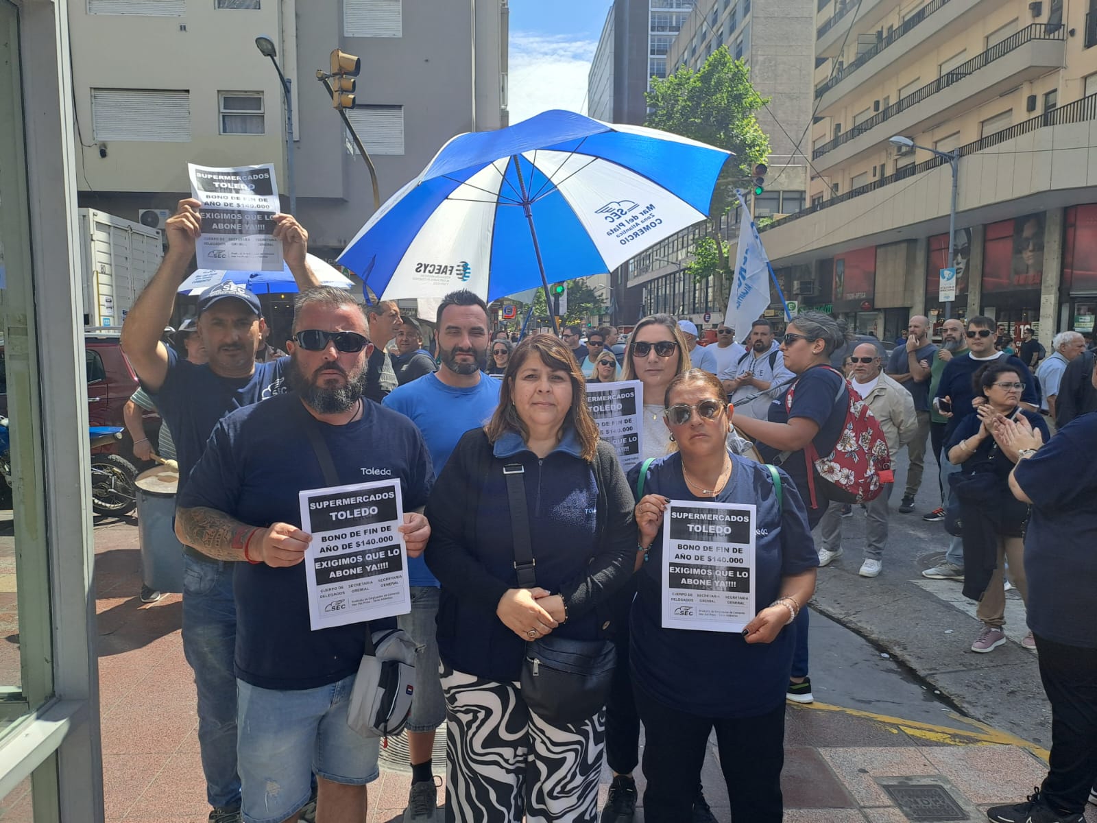 El Sindicato de Empleados de Comercio de Mar del Plata y Zona Atlántica junto al cuerpo de delegados de la empresa Toledo llevaron adelante una protesta este lunes en reclamo del pago del bono de fin de año.