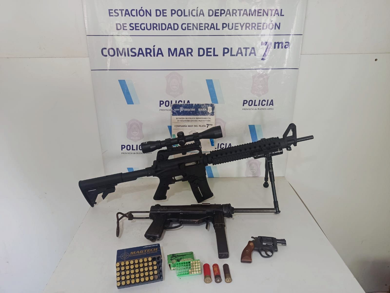 El procedimiento se llevó a cabo esta tarde por personal de la Comisaría Séptima, quienes irrumpieron en una vivienda del barrio Constitución. Al ingreso se procedió al secuestro de un rifle calibre 22, un revólver calibre 32 largo, un subfusil calibre 9 y municiones de diferente calibre por lo que el imputado resultó aprehendido.