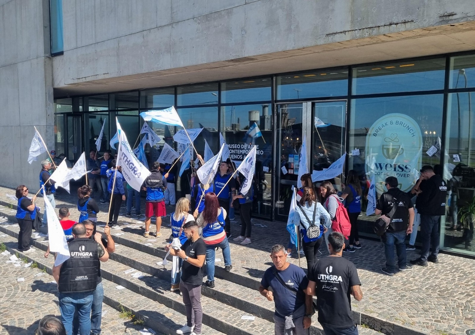 UTHGRA Mar del Plata se plantó una vez más contra la informalidad y llevó a cabo este miércoles una protesta contundente contra la precarización laboral en el Café Weiss, con una manifestación que comenzó en el local de esta cadena en Félix U. Camet y López de Gomara y que luego se extendió a otras sucursales dónde también abundan las irregularidades.