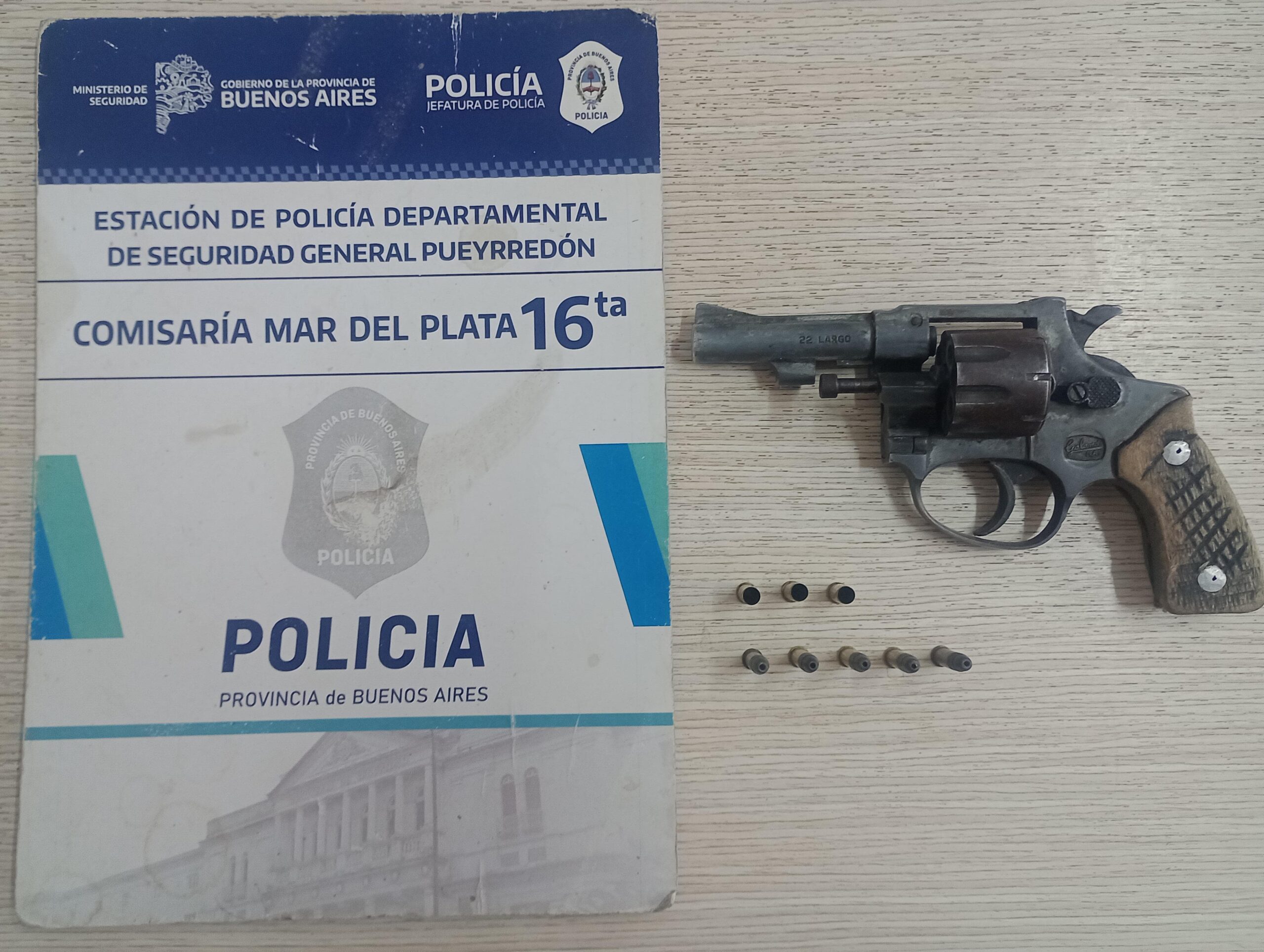 Al advertir la presencia policial, el sujeto extrajo un arma de fuego y efectuó varias detonaciones intimidatorias, se dio a la fuga y en el camino descartó un arma de fuego, un revolver Gland calibre 22 mm.