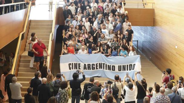 Se trata del colectivo Cine Argentino Unido, surgido de la autoconvocada Asamblea Audiovisual Abierta, en defensa del cine, la cultura, la educación y la democracia.