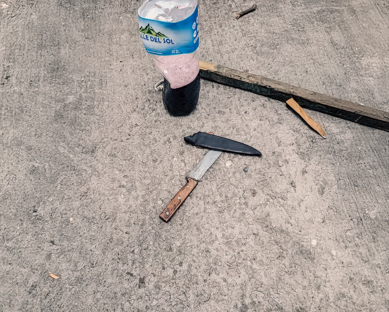 En el marco del procedimiento, se realizó una requisa preventiva, constatando que portaba en su cintura un cuchillo de aproximadamente 30 centímetros.