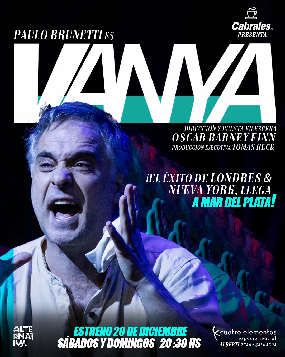 Luego de las temporadas con “Muchacho de Luna” y “La lluvia seguirá Cayendo”, el actor Paulo Brunetti y el director Oscar Barney Finn, con el apoyo de Café Cabrales presentan VANYA en la nueva y radical versión del Tío Vania de Chéjov, escrita por Simon Stephens.