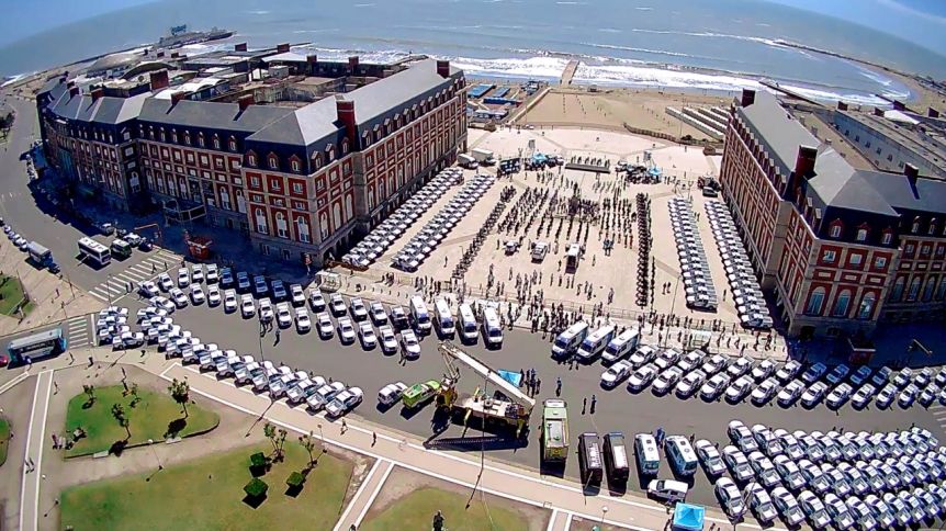 En la jornada de este martes, comenzaron a llegar a «la ciudad feliz» camionetas y autos de la policía bonaerense, que fueron guardados en el área de estacionamiento del estadio mundialista «José María Minella», ubicado en la avenida de las Olimpiadas al 700.