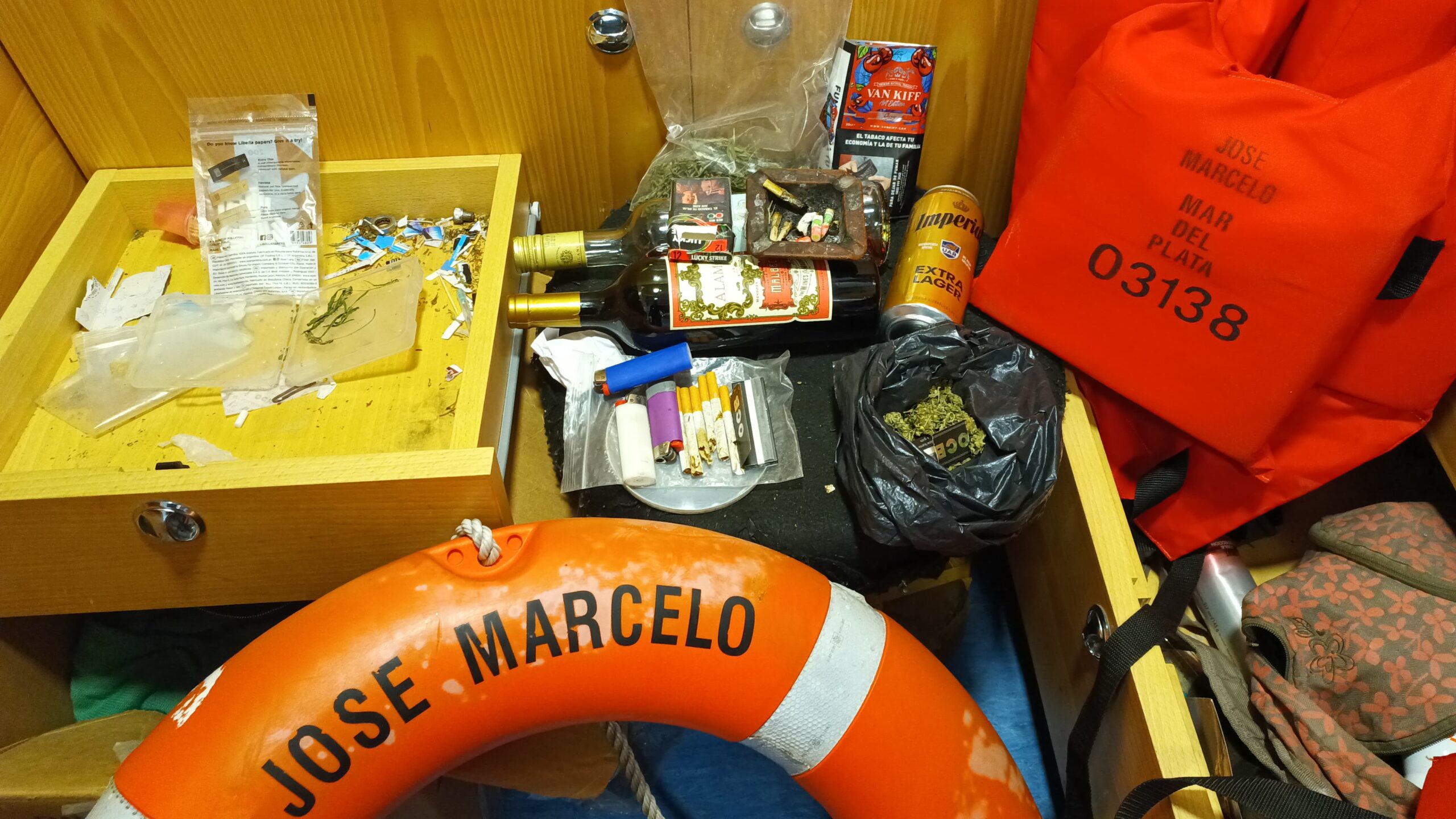 Además, efectivos de la Prefectura también encontraron en el sector de la cocina y en un camarote bebidas alcohólicas.
