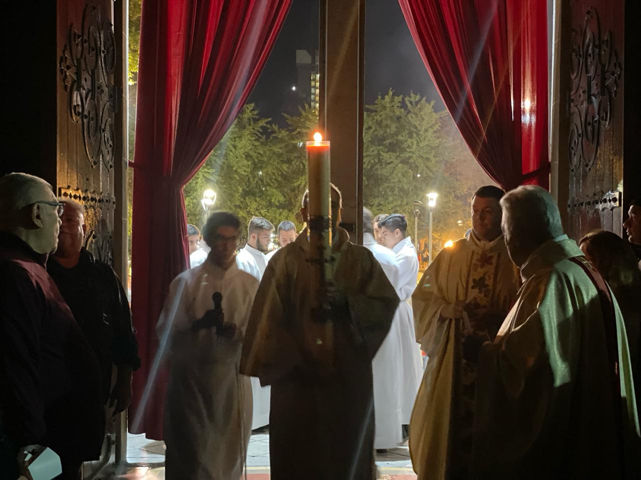 Este sábado se llevó adelante la ceremonia a partir de las 20 en la iglesia Catedral y el Administrador Apostólico de la Diócesis de Mar del Plata estuvo acompañado por el Párroco de la Catedral, Presbítero Ariel Sueiro, el Padre Armando Ledesma y el vicario Juan Pablo Arrachea.