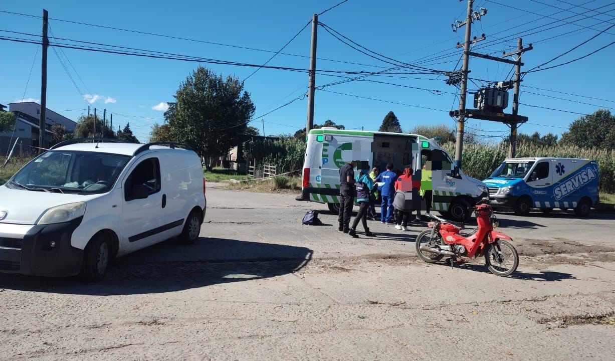 Por circunstancias a establecer, una camioneta Fiat Fiorino, conducida por un hombre de 37 años, impactó contra una moto Motomel 110cc conducida por una mujer de 38.