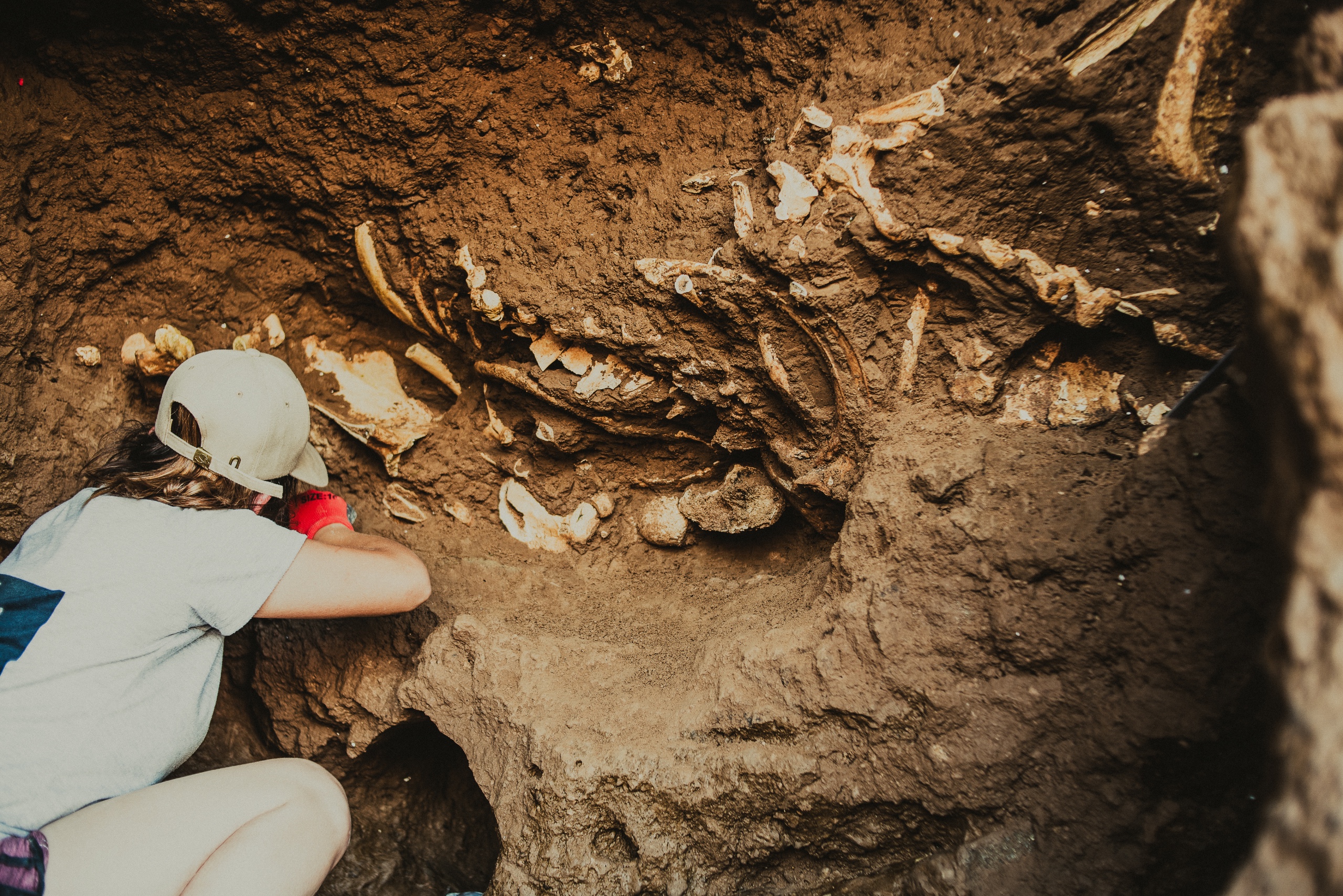 El otro hallazgo se realizó a 50 metros al norte del primero, en este caso, por parte de Vanesa Moran, colaboradora del equipo de paleontología del Museo Scaglia, quien dio con uno de los animales prehistóricos más esquivos: Pampatherium typum.