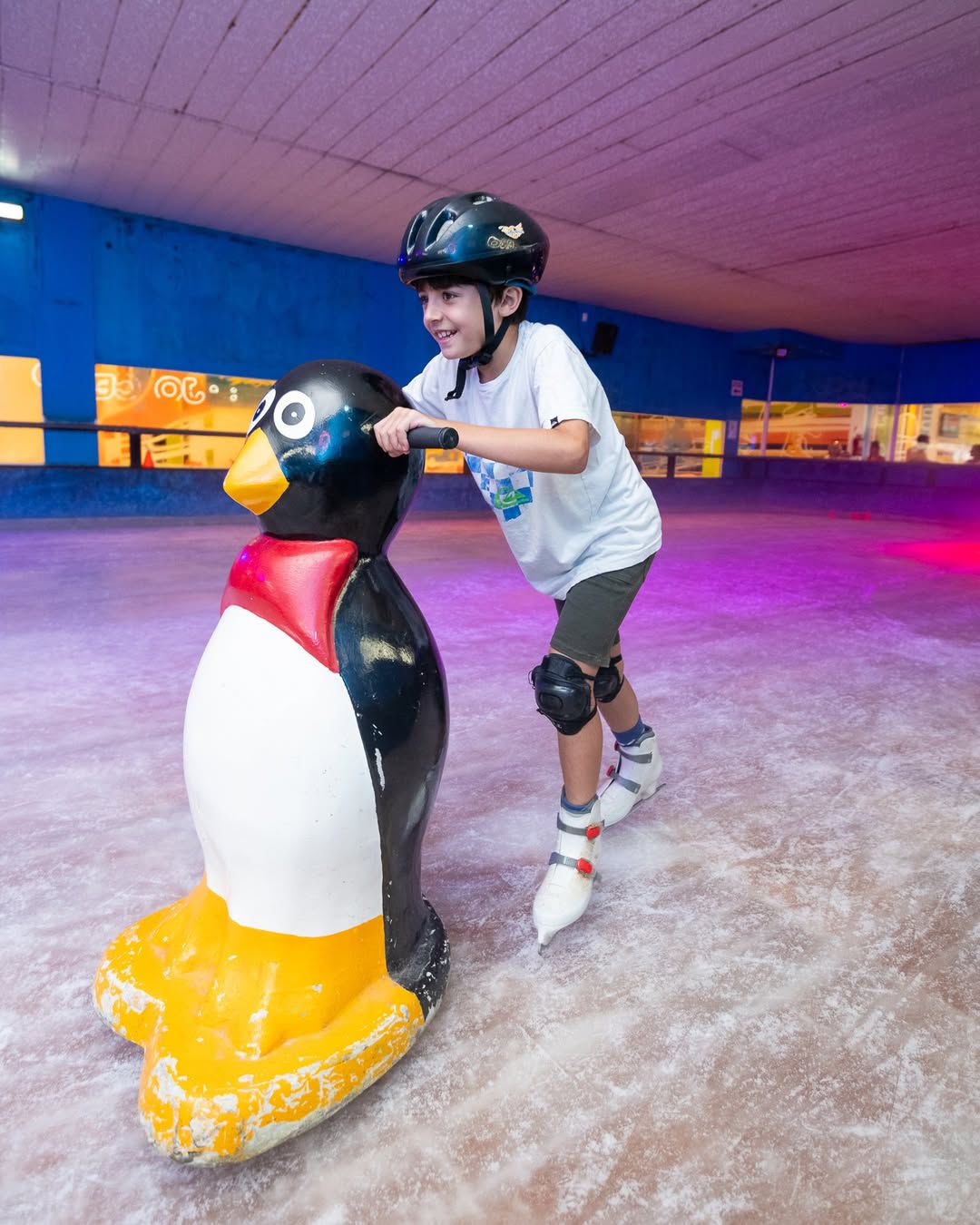 Bajo Cero brindará todos los elementos de seguridad necesarios para patinar, como casco, rodilleras y coderas. Además, los más chicos pueden animarse a la pista acompañados por pingüinos andadores, pensados especialmente para quienes dan sus primeros pasos sobre el hielo.