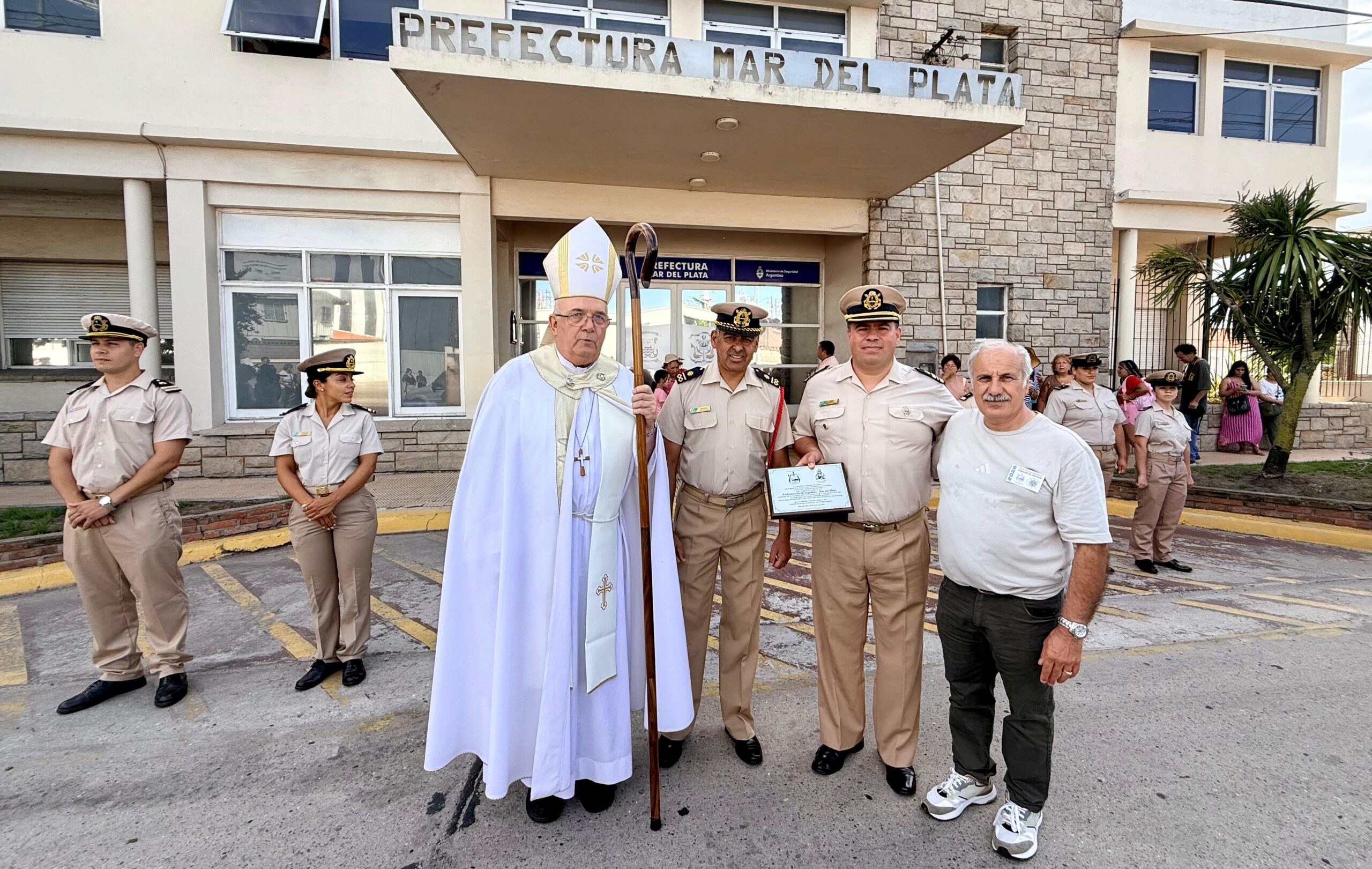 En esta ceremonia se entregó una placa conmemorativa, la cual exaltó el compromiso de la institución: “La Sociedad de Patrones Pescadores tiene el agrado de reconocer a la Prefectura Naval Argentina – Mar del Plata en gratitud por su incansable labor en la protección de la vida humana en el mar, su compromiso con nuestra comunidad portuaria y por el apoyo incondicional a través de los años en los Festejos de San Salvador”. La misma fue recibida por el Jefe de Inspecciones Técnicas de Prefectura Mar del Plata, Prefecto Julio Ríos, y el encargado de la dependencia, ayudante mayor Jorge Márquez.
