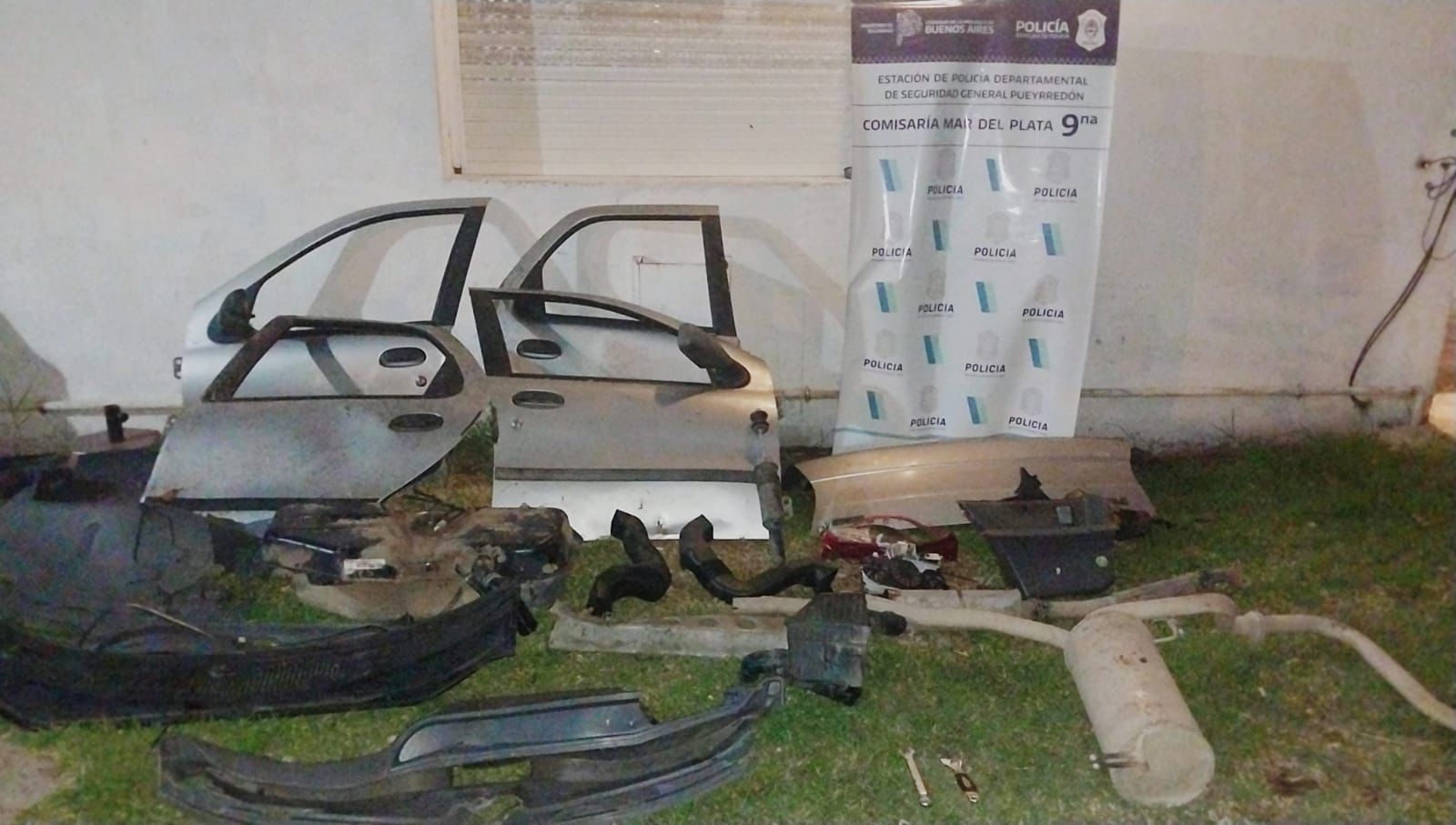 Así mismo, desde dicho domicilio los efectivos observaron autopartes en el patio de una vivienda lindera, por lo que llevaron a cabo el secuestro de cuatro puertas de color gris con pedido de secuestro pertenecientes al rodado Fiat Siena mencionado anteriormente.