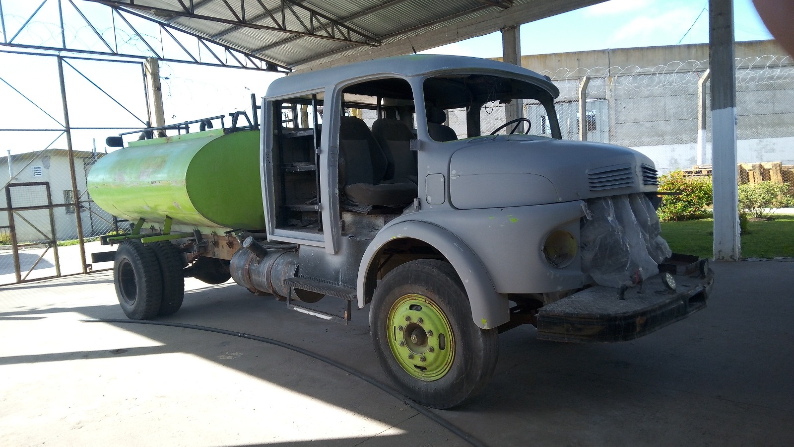 Personas privadas de su libertad de la Alcaidía Penitenciaria de Batán repararon un autobomba histórico del Cuartel de Bomberos de Batán en el marco de las actividades de servicio a la comunidad.