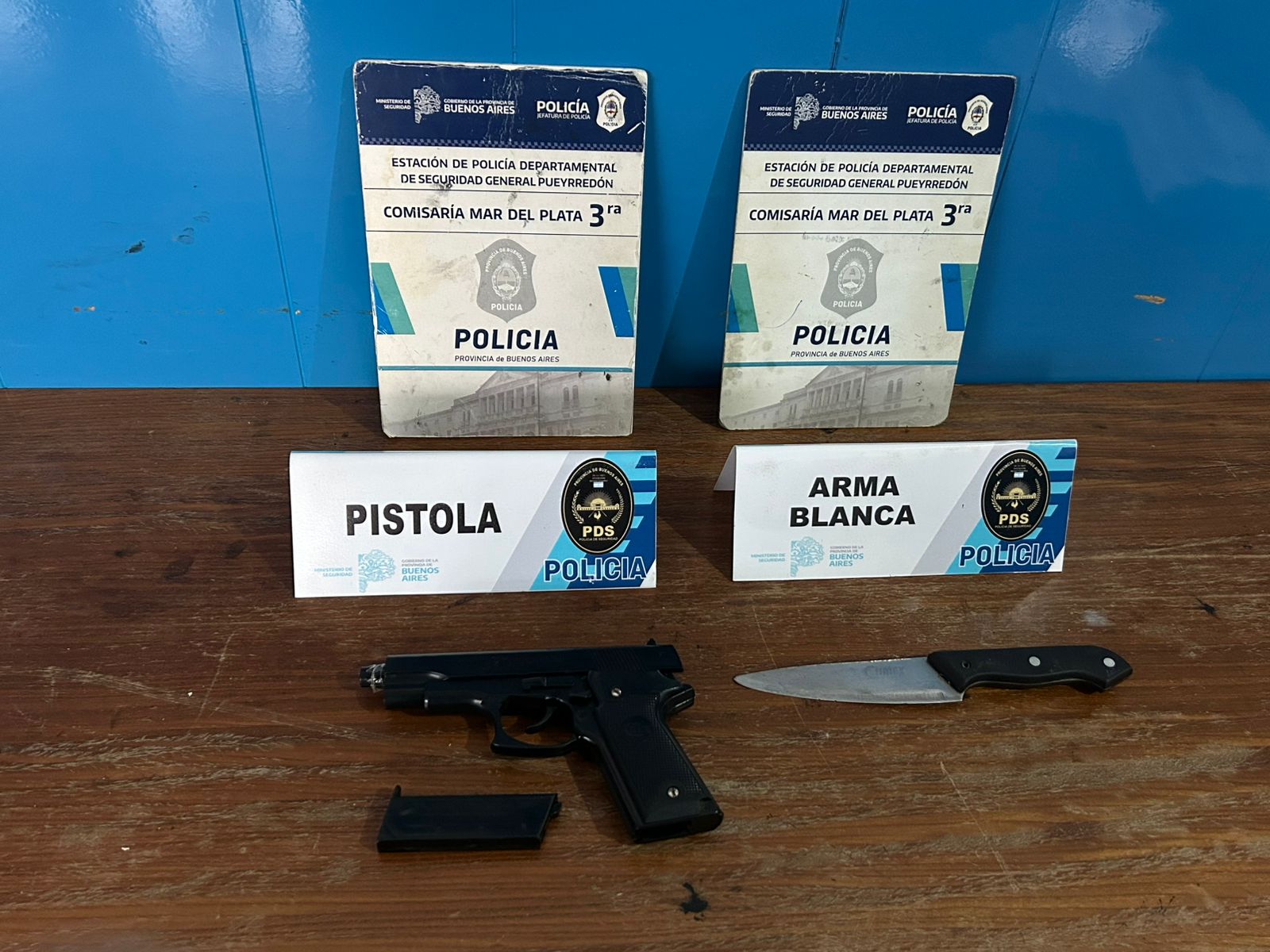 Según se desprende del parte policial, en Cerrito al 1.600, el sujeto había robado a una mujer de 36 años una cartera con documentación y un teléfono celular mediante el empleo de un arma tipo pistola de utilería y un arma blanca, la cual llevaba entre sus prendas.