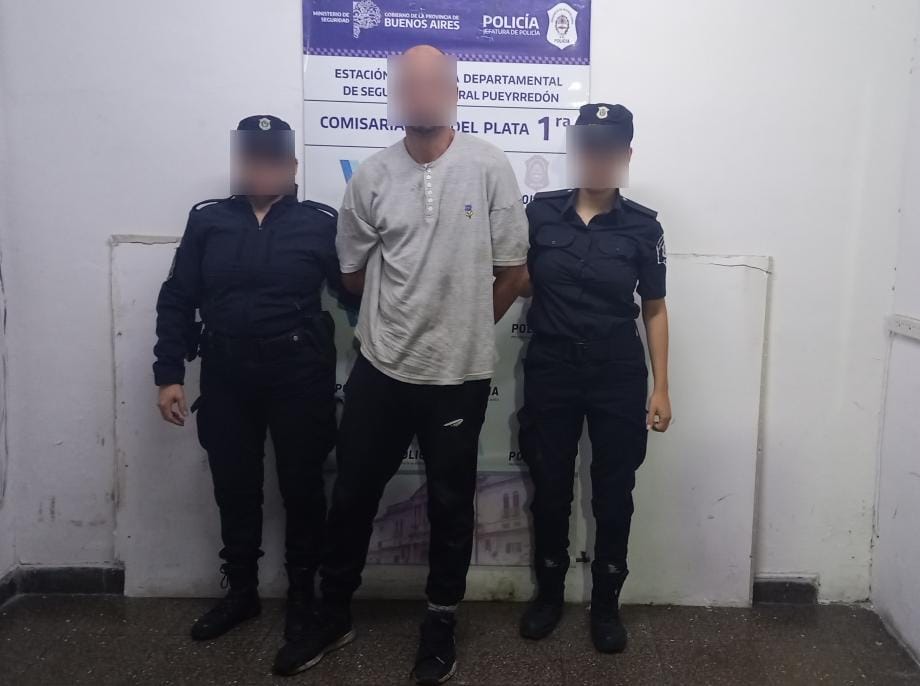 De inmediato, personal del Comando de Patrullas se trasladó a la zona de Rivadavia y Jujuy, donde observaron a un sujeto que se encontraba con los pantalones bajos, tocándose frente a un club familiar.