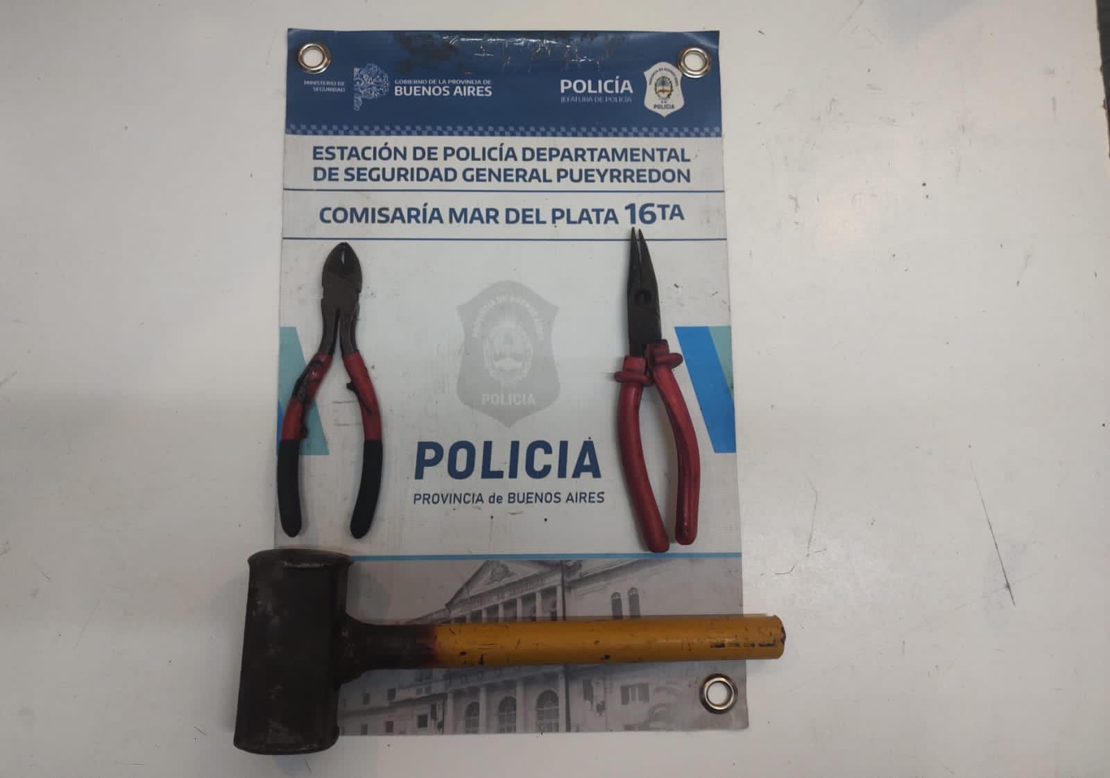 En el lugar se secuestraron herramientas, una maza, un alicate y una pinza.