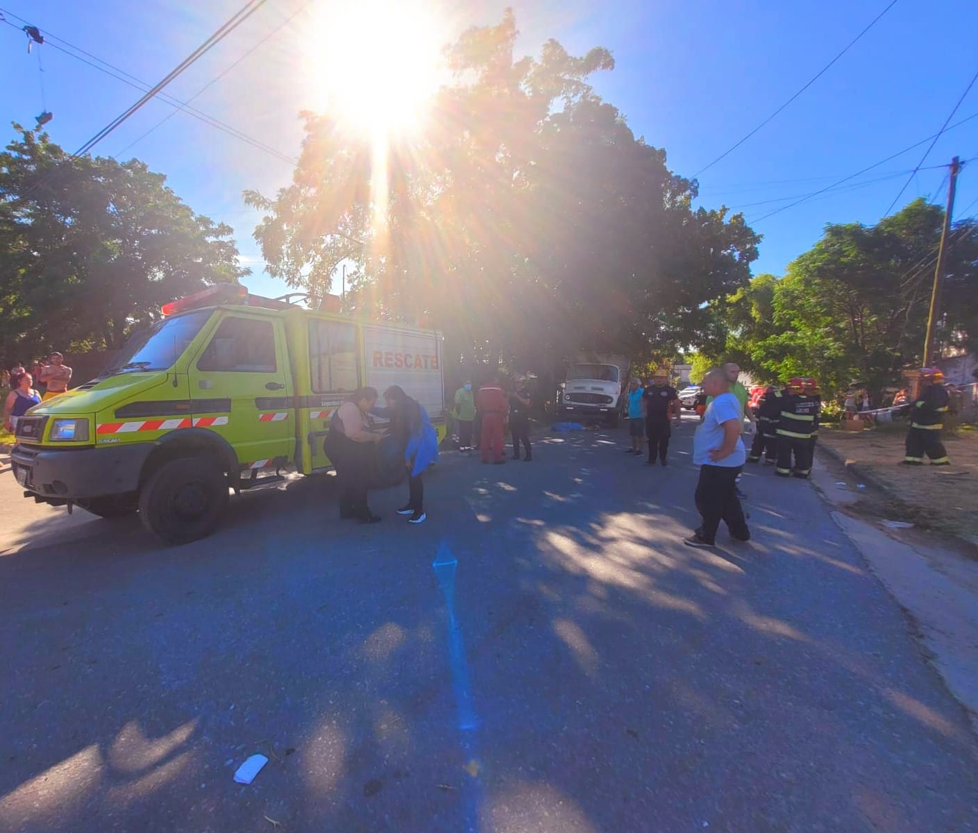 camión Mercedes Benz había atropellado a un hombre que se encontraba con su moto junto al cordón de la vereda.