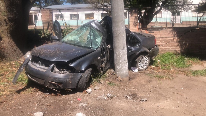 Un Volkswagen Bora perdió el control por motivos que son materia de investigación y terminó chocando brutalmente contra una columna de alumbrado público, quedando abrazado el poste.