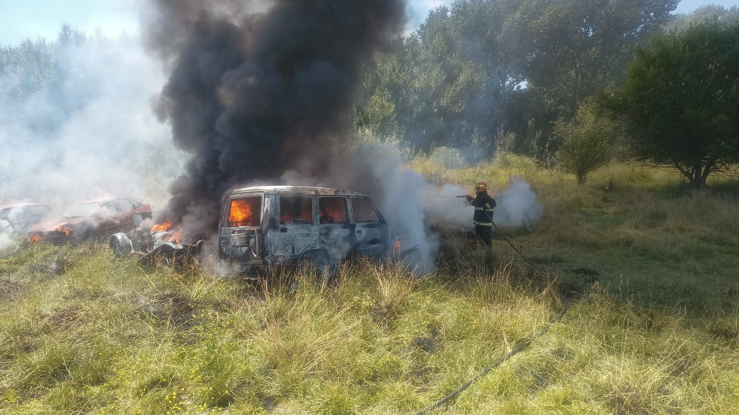 Al llegar a la zona, se encontraron con que fuego había comenzado con las malezas de la zona y alcanzó a varios vehículos abandonados en el lugar.