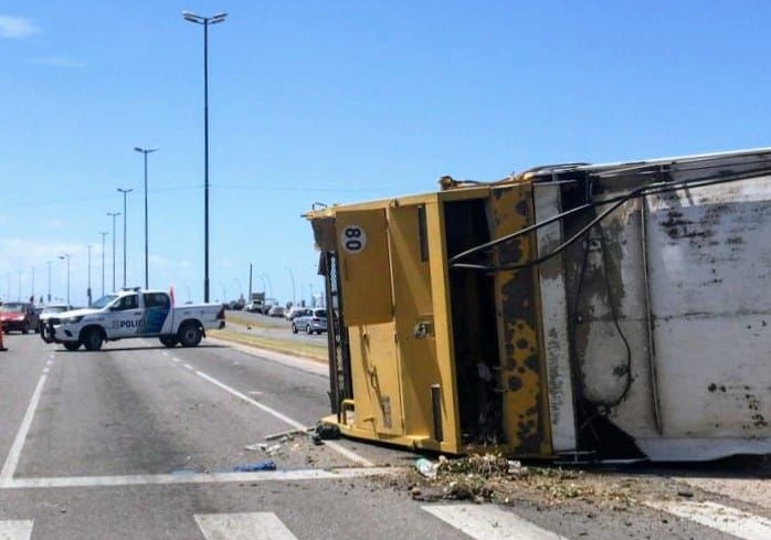 Al llegar a la zona, en la avenida Felix U. Camet y José Manuel Estrada, los uniformados constataron que un camión de la empresa 9 de Julio, conducido por un hombre de 53 años, había volcado a la altura del semáforo, dejando importantes daños materiales.