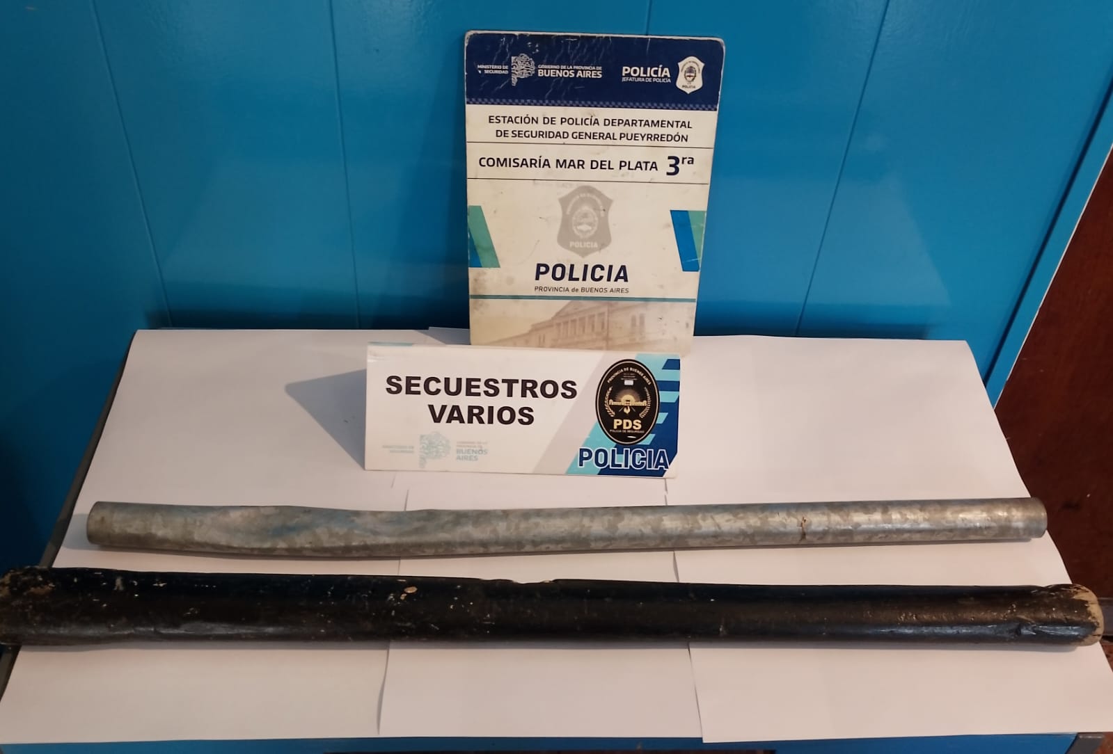 Durante el procedimiento se procedió al secuestro de un palo de madera de aproximadamente 80 centímetros y una barra metálica negra de unos 90, ambos elementos utilizados durante la confrontación.